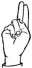 На ћирилици написано ВУКАШИН КЛИНЦОВ састоји се из 14 слова [?]. Исписано ћириличном једноручном азбуком за глувонеме: